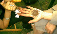Préparation : Mélangez deux cuillères de henné, délayez avec un peu d’eau, une cuillère de jus de citron vert pour une durée plus longue, et de l’eau de rose de façon à obtenir une pâte onctueuse. Assurez-vous de façon à ce qu’elle ne soit ni trop sèche ni trop liquide. Faites chauffer ce mélange et laissez votre préparation en attente quelques minutes. Pour dessiner un tatouage, munissez-vous d’une seringue(sans aiguille) et laissez libre cours à votre fantaisie. Une fois que vous avez nettoyé